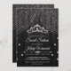 Invitación Diamante negro plateado Tiara Sweet 16