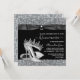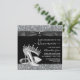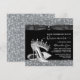 Invitación de Quinceañera con hermosos zapatos de tacón alto con brillo plateado y tiara de diamantes en un elegante fondo de lazo de diamante negro y blanco glam. Esta elegante invitación de Quinceañera en negro y blanco se personaliza fácilmente con tus datos. También puedes cambiar el color de fondo en la parte delantera y trasera.