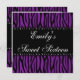 Invitación Diamantes de cebra morada dulce 16 cumpleaños