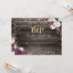 Invitación Diamantes dorados flores de Borgoña madera