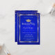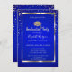 Tapa de graduación de purpurinas de oro y diamantes de oro sobre un fondo azul real.