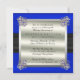 Sofisticado y elegante aniversario de boda falso fondo de satén azul zafiro y cinta de satén negro con diamantes y zafiros en un estilo cerrado que continúa en la parte posterior. La parte posterior tiene una superposición de tarjeta falsa plateada y perlada montada en las esquinas con los broches de zafiro y diamante. Diseño original de Holiday Hearts Designs (todos los derechos reservados).