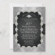 Invitación de aniversario de bodas de 25 años brillantemente sofisticada y elegante con fondo superpuesto de encaje negro y plateado y cinta de satén impresa negra con diamantes impresos en forma de corazón, lágrima y redondos dispuestos en un marco rectangular redondeado. La cinta de satén negra y el fondo de encaje negro y plateado continúan en la parte posterior para un aspecto pulido y sofisticado. Diseño original de Holiday Hearts Designs (todos los derechos reservados). Tenga en cuenta que todos los adornos son impresos.