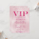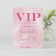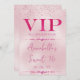 Esta glamurosa invitación de acceso total para fiestas VIP presenta un diseño femenino y brillante sobre un fondo rosa. El título de VIP está impreso en la parte superior, seguido por el título del evento. Cadenas de diamantes rosados separan el texto. Confeti brillante acentúa los bordes superior e inferior. La ubicación y hora de la fiesta o evento están impresas en la parte posterior. Es perfecto para una fiesta de cumpleaños, dulces 16, despedida de soltera u otra celebración elegante.