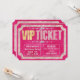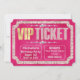 Esta glamorosa y femenina invitación a la fiesta personalizado presenta un diseño de estilo hollywoodiense de apariencia brillante. Un borde de diamantes rosas encuadra la invitación. La palabra Ticket está impresa en un patrón purpurina y VIP está impresa en Relieve metalizado dorado. El fondo es una lujosa decoración de perlas rosadas.