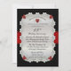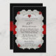 Brillantemente sofisticada y elegante invitación de aniversario de bodas número 15 con fondo negro y cinta de raso impresa en rojo rubí con diamantes y corazones impresos en rubí dispuestos en un marco rectangular redondeado. La cinta de raso roja falsa y el fondo negro continúan en la parte posterior para un aspecto pulido y sofisticado. Diseño original de Holiday Hearts Designs (todos los derechos reservados). Tenga en cuenta que todos los adornos son impresos.