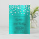 Una invitación a la bonito para su fabulosa celebración de fiestas de 40 años. El confetti brillante estilo falso diamante diamante de imitación y el Relieve metalizado brillante metálico es un gráfico de arte digital impreso. Personalizar el estilo de letra, el tamaño, el espaciado y el color para que coincidan con el estilo. Aumente el tamaño de letra de su nombre para nombres más cortos. Invitaciones para la fiesta de cumpleaños del personalizable. Invitaciones a la moda y a los glam. Los colores son oscuros y turquesa, con un toque acuático.