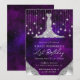 Elegante vestido de diamante plateado con luces de cuerda de Bokeh plateado y Purpurina Glam Edges sobre un fondo de fantasía de galaxia púrpura y azul
