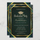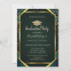 Invitación Diamonds Gold Grad Cap Striped Green Graduation