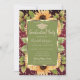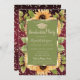 Gold glitter graduation cap, gold diamonds, and sunflowers on a dark red background.
