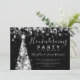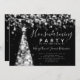 El diseño elegante de la invitación del fiesta del estreno de una casa del día de fiesta con el árbol de navidad de plata enciende adorno, nombre y fecha de encargo y texto adicional