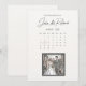 Tarjeta de salvar la fecha con fecha marcada en el diseño del calendario, con ilustración de sello postal de estilo de cómic que muestra la imagen de una feliz pareja de recién casados.
