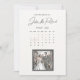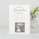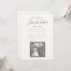 Tarjeta de guardar la fecha con fecha marcada en el diseño del calendario, con ilustración de sello postal de estilo cómic que muestra la imagen de una feliz pareja de recién casados.