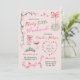¿Disfrutando de un pequeño fin de semana de despedida de soltera en honor a una futura novia? Invite a sus amigas más cercanas con esta invitación de fiesta de despedida de soltera coqueta y dibujada a mano con una bola de discoteca, bebidas, un par de tacones lindos, una tiara bonita, bastones de caramelo y luces de Navidad en un lado, y el itinerario de su fin de semana de despedida de soltera en la parte posterior con lindos dibujos que coinciden.