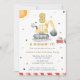Celebrate your little builder’s big day with this 3rd birthday construction party invitation featuring a watercolor yellow digger, dump truck, and playful confetti accents. A fun “3 & DIGGIN’ IT!” headline and bright orange details set the tone for a cheerful truck-themed birthday. Perfect for boys who love excavators and dirt-filled adventures.
