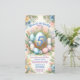 Una encantadora invitación digital descargable para una fiesta de cumpleaños con temática de Pascua, perfecta para niños y cualquiera que adore este estilo. La invitación muestra una deliciosa variedad de huevos de Pascua y flores, adornadas con tonos pastel suaves. Su diseño encantador y atractivo seguramente creará recuerdos duraderos para sus invitados.