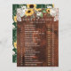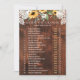 Un elegante juego de ducha con moda de novia diseñado para la futura novia de estilo rústico. Nuestro diseño presenta nuestra acuarela pintada a mano girasoles dorados amarillos, flores de crema blanca, y vegetación natural que se ha dispuesto para crear este elegante arreglo de estilo rústico. "Adivina de novia o de novio quien lo dijo" se muestra en la parte superior con. Los amarillos dorados, las cremas y la paleta de colores verdes del bosque crean un elegante estilo rústico rústico. Colores acuáticos amarillos con flores de sol y vegetación en la parte superior. En el reverso se muestra nuestro patrón de girasol amarillo acuarela. Todas las flores son obras de arte originales a mano de Moodthology.