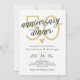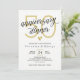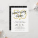 Invitación elegante para la cena de aniversario de boda en negro y blanco con detalles dorados.
