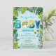 Invitación Dino acuarela y Baby Shower de hojas tropicales