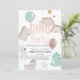 Esta encantadora invitación a la fiesta de primer/primer cumpleaños del chica "dino fiesta" tiene un fondo blanco con dinosaurios y globos. El reverso presenta un fondo rosa claro con huellas de dinosaurios. Personalice sus necesidades. Puedes encontrar productos coincidentes en mi tienda.