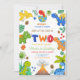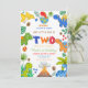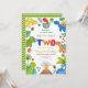 Stomp, Chomp, Roar!! Let's Party Like a Dinosaur! Featuring charming illustrations of friendly dinosaurs and lush tropical leaves, this invitation will set the perfect tone for your event.