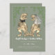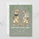 Delight your guests with this funny dinosaur-themed wedding invitation, featuring a charming T-Rex bride and groom in warm brown hues surrounded by lush green jungle foliage. Set against a stylish sage green background, this bold and modern design is perfect for couples who love dinosaurs and want to add a playful twist to their special day.