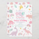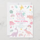 Invitación Dinosaurio Rosa Girly Primer Cumpleaños