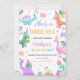 Invitación Dinosaurio rosa Tres Rex Chica Dino Fiesta de Cump