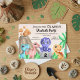 Esta es una adorable invitación de cumpleaños con tema de dinosaurios para una fiesta de cumpleaños de un niño pequeño. El ilustracion está formado por 4 adorables bebés dinosaurios con un volcán en el fondo y un poco de follaje. La tarjeta puede ser personalizada con sus propios detalles.