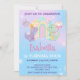 Invitación Dinosaurios de unicornio, lustre, donut arcoiris,