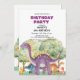 Un diseño bonito con dinosaurios coloridos. Puede personalizar esta invitación con sus propios detalles.
