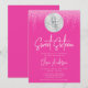 A modern disco sweet 16 invitation. This trendy invite features a silver disco ball and sparkle lights on a pink background.