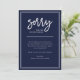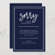 Este simple y elegante anuncio en azul marino es una forma de disculparse con los clientes o amigos cuando debes cancelar, reprogramar o posponer un evento o boda. La escritura moderna a mano alzada en blanco añade un toque elegante, mientras que el marco rectangular añade un aspecto formal y clásico. Utiliza estas tarjetas de anuncio para cualquier cancelación, aplazamiento o reprogramación.