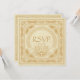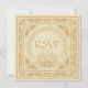 Este diseño celta con tarjeta de respuesta RSVP de boda Claddagh presenta motivos de animales entrelazados celtas en el borde frontal exterior y las esquinas que rodean el anillo tradicional irlandés Claddagh con las manos sosteniendo un corazón (de diseños en espiral celtas) con una corona que simboliza la amistad (manos), el amor (corazón) y la lealtad (corona). El anillo se completa con un trabajo tradicional de nudo celta. La textura del fondo se deriva de un antiguo manuscrito medieval. La parte posterior también presenta esta textura de fondo medieval y también tiene un borde de nudos celtas en oro clásico.