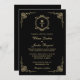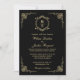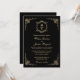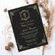 Invitación Diseño Clásico de Monograma Elegante Negro y Dorad