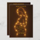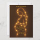 Silueta de mujer embarazada con luces brillantes sobre fondo oscuro para tema de fiesta de bebé.