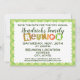 Diseño de temática verde para invitaciones de reunión familiar. Estilo de escritura creativo utilizado. Personaliza el texto. Texto adicional, se pueden incluir imágenes, dimensionar, si se utiliza el botón personalizar.