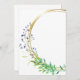 Esta es una invitación a la boda en blanco para que usted sea personalizar; tiene un spray floral, hojas y barrido circular dorado