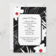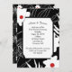 Diseño floral blanco contemporáneo con centros rojos en negro para la invitación a la boda. El texto es editable. Se puede usar para la invitación a la ceremonia de renovación de Vow.