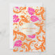 Damasco de PixDezines pavo en tangerina y naranja de pasión sobre fondo blanco perlino (removible).
