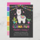 ¡Invitación temática de la diversión y del cumpleaños de la llama femenina para todas las edades!