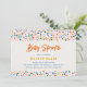 Añade un resplandor de alegría a tu celebración con esta invitación festiva y moderna de Baby Sprinkle. Con un colorido borde rociado de confeti y una moderna tipografía minimalista, este diseño lúdico es perfecto para honrar a un segundo (¡o tercer!) bebé. En el reverso se encuentra un bonito fondo de rayas que le da un toque de encanto. Disponible como tarjetas impresas profesionalmente o como una descarga digital conveniente para facilitar la impresión y el uso compartido.