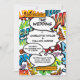 Una divertida, moderna y trendy invitación de boda inspirada en el arte pop de los cómics que pone el golpe, el zap, el pow en la celebración de cualquier pareja de superhéroes. El reverso presenta un patrón de cómic coincidente que se puede reemplazar con su propia imagen o foto. Diseñado por Thisisnotme©