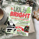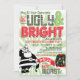 Personalice esta retro y divertida invitación de la fiesta de Navidades de suéter suéter rojo, verde y blanco con una adorable y desconcertada Santa Claus de color blanco y negro, luces de marquesina y tipografía de suéter que dice: "¡Que todos sus suéteres estén ENFADOS!" Personalizar con facilidad la redacción para convertirla en tu propio diseño de H(H) creado con cariño por Fig y Lily Studios