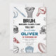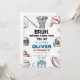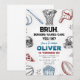 Prepárate para anotar un gol con esta divertida invitación de fiesta temática deportiva. Perfecta para amigos que aman las hamburguesas, los juegos, la torta y todo lo relacionado con los deportes, esta divertida invitación presenta un diseño juguetón que seguramente traerá una sonrisa a sus rostros. Ya sea que estés organizando una fiesta para ver baloncesto, una fiesta de cola de milano de fútbol o simplemente una noche de juegos con amigos, esta invitación es la forma perfecta de iniciar la fiesta. Con su mezcla única de símbolos deportivos y de comida, esta invitación seguramente será un éxito con tus amigos. Entonces, ¿por qué esperar? Envía hoy esta divertida invitación de fiesta deportiva y prepárate para una celebración llena de diversión con tus amigos.