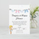 Esta invitación para baby shower de pañales es ideal para cualquier futura madre de una princesa. El diseño es de un hermoso tono rosa y beige, con una adorable imagen de un pañal colgando en acuarela. Es ideal para una fiesta temática de pañales o toallitas o cualquier otro evento de baby shower rosa, y es fácil de personalizar con la información de su fiesta.
