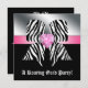 Invitación de fiesta de graduación con divertido lazo de cebra y joyas en forma de corazón.