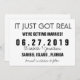 Una divertida invitación de boda "Acaba de ponerse serio" para guardar la fecha.