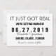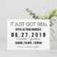 Una divertida invitación de boda de "Acaba de ponerse serio" para guardar la fecha.