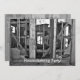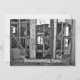 Las invitaciones para celebrar su nueva casa, que se hacen con el calentamiento de la casa, incluyen una vista dentro de una ventana de una casa abandonada y destruida.